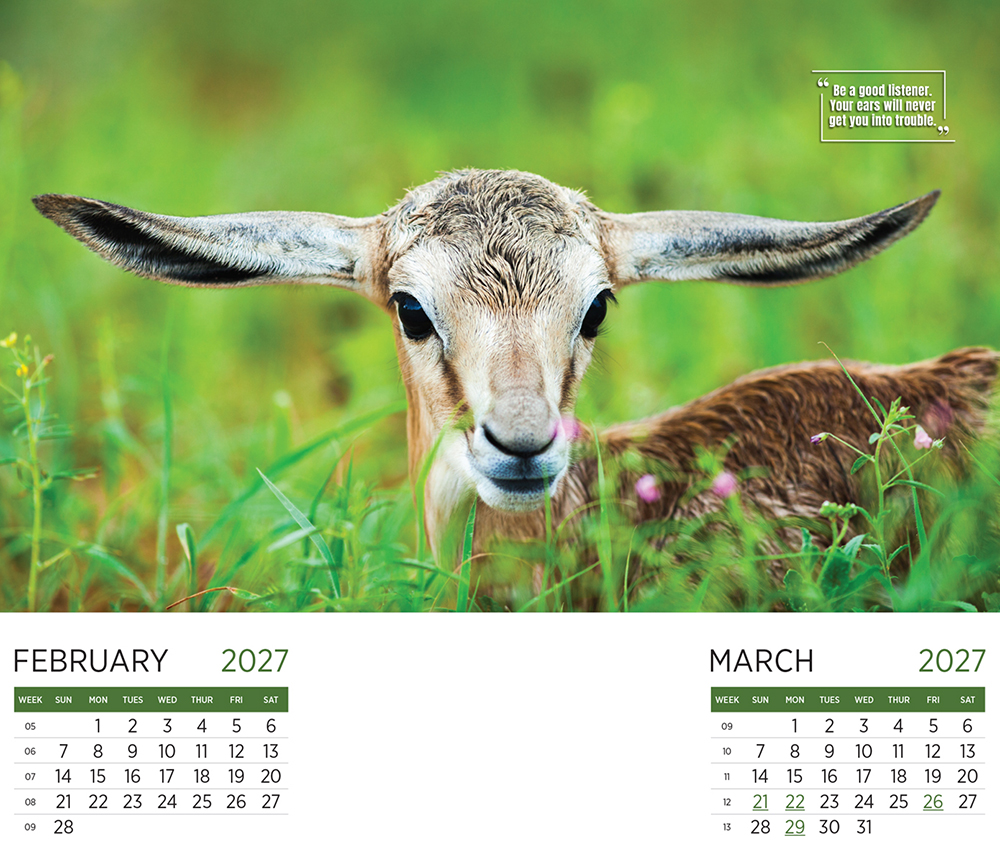 Bring the wild into your office with this stunning large-format wildlife calendar!