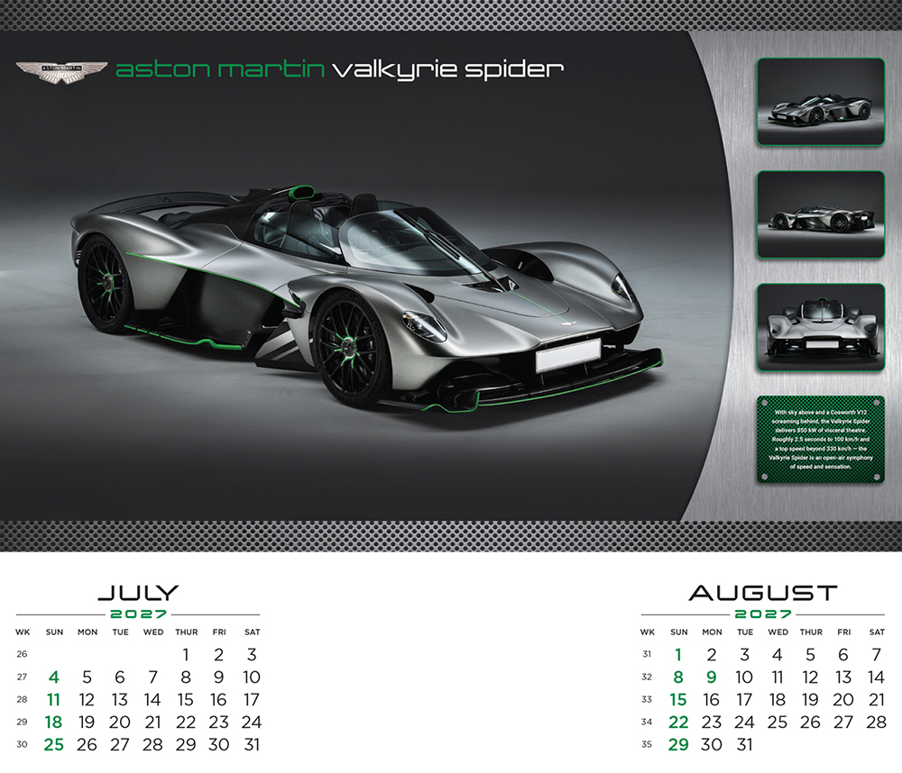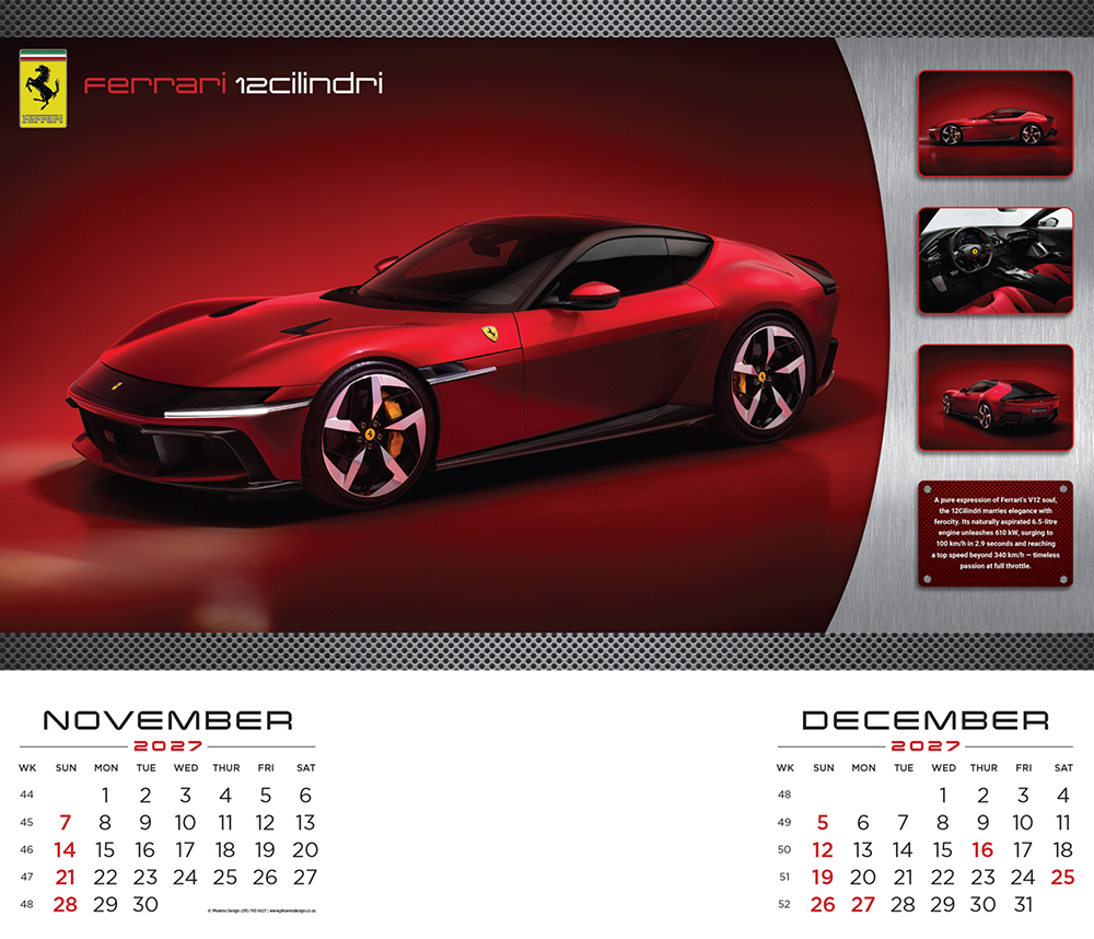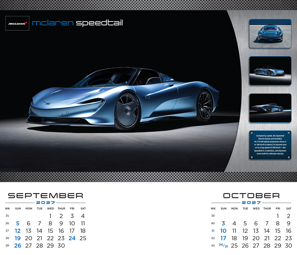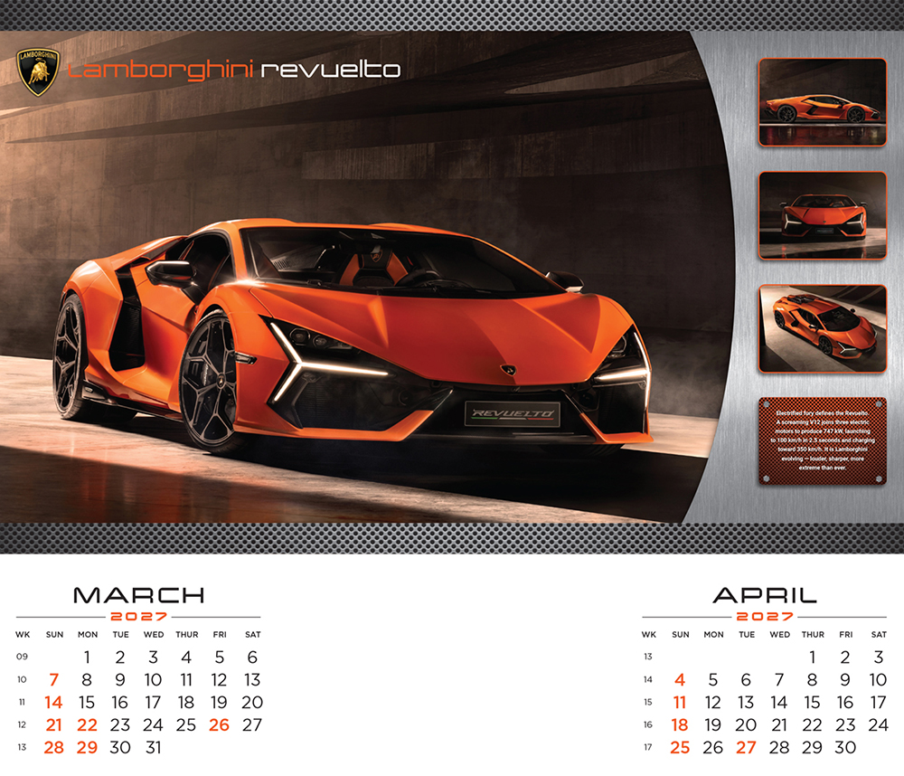 Showcasing a stunning collection of iconic performance cars, each month delivers adrenaline, style, and excitement straight to your wall.